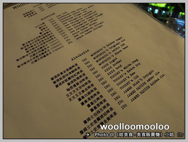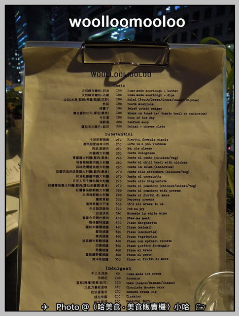 Woolloomooloo‧餐點menu,有前菜、主菜;