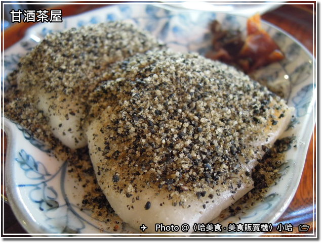 同樣的芝麻黃豆粉麻糬,也附上一份的醬菜,轉換口味..