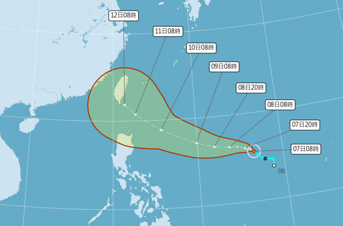 中央氣象局指出,原位於菲律賓東方海面的熱帶低壓,7日上午已發展成為今年第14號颱風「燦樹」,其路徑以西北西方向進行,朝台灣、巴士海峽移動。預計週末接近台灣,不排除有侵襲台灣的機會。
