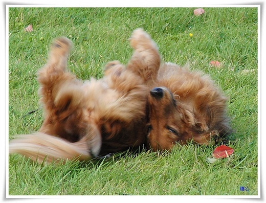 好棒喲! 太陽公公終於出來和我見面了.我最最喜歡太陽公公了! 看我在草地上玩得多開心啊!