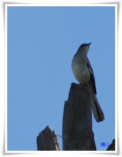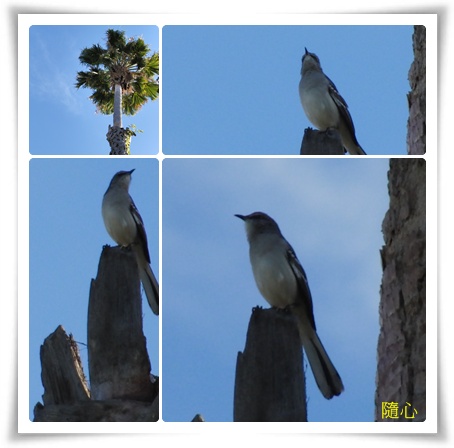 週末的清晨 帶著 Diva 到後院放風空中傳來悅耳的鳴聲四處探尋發聲之源啊! 是高聳入雲的棕櫚樹這麼清脆嘹喨的嗓音 竟是來自這小小的軀體是在為我歌唱嗎?我滿心歡喜的接受你那清晨的祝福