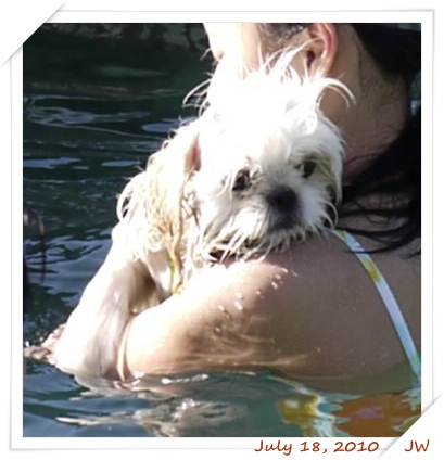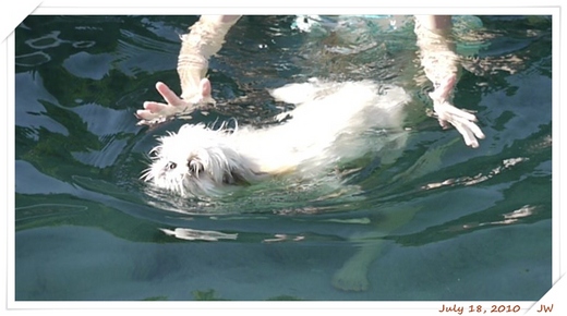 果真是動物的天生本能,Romeo 一下水就自動游起來了。