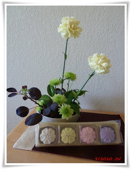 果然是插花老師的眼力!是前兩個星期上課的花啦!看他們還很漂亮,捨不得丟,就自己拿來玩一玩咯!謝謝誇獎, 讓我信心大增不少。