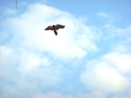 「不過是一只風箏而已,瞧你緊張似的。」一個好熟悉的聲音在我耳畔響起,彷彿又回到您我爭辯一只風箏的當時,您帶我去堤防放鷹樣的風箏,好一隻瞵視昂藏的鷹,我手抓著鷹,您拉著線,來到一個人跡較少的地方,您跑了起來,我放掉手中的鷹,它迎著風飛了起來,飛起來的鷹,自有它偉壯迷人的英姿,尤其在燦爛的陽光底下。看著您牽線的鷹越飛越高,心情也跟著興奮了起來。