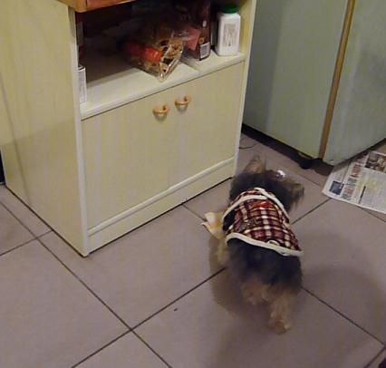 又快接近中午時間了,雖然我通常只用早晚兩餐,但現在"老歡顛"的我可不管這一套了,中午都得起碼混2.3口雞肉,不然混1.2塊狗餅乾也行啦!快快準備好,來去"提醒"主人囉!