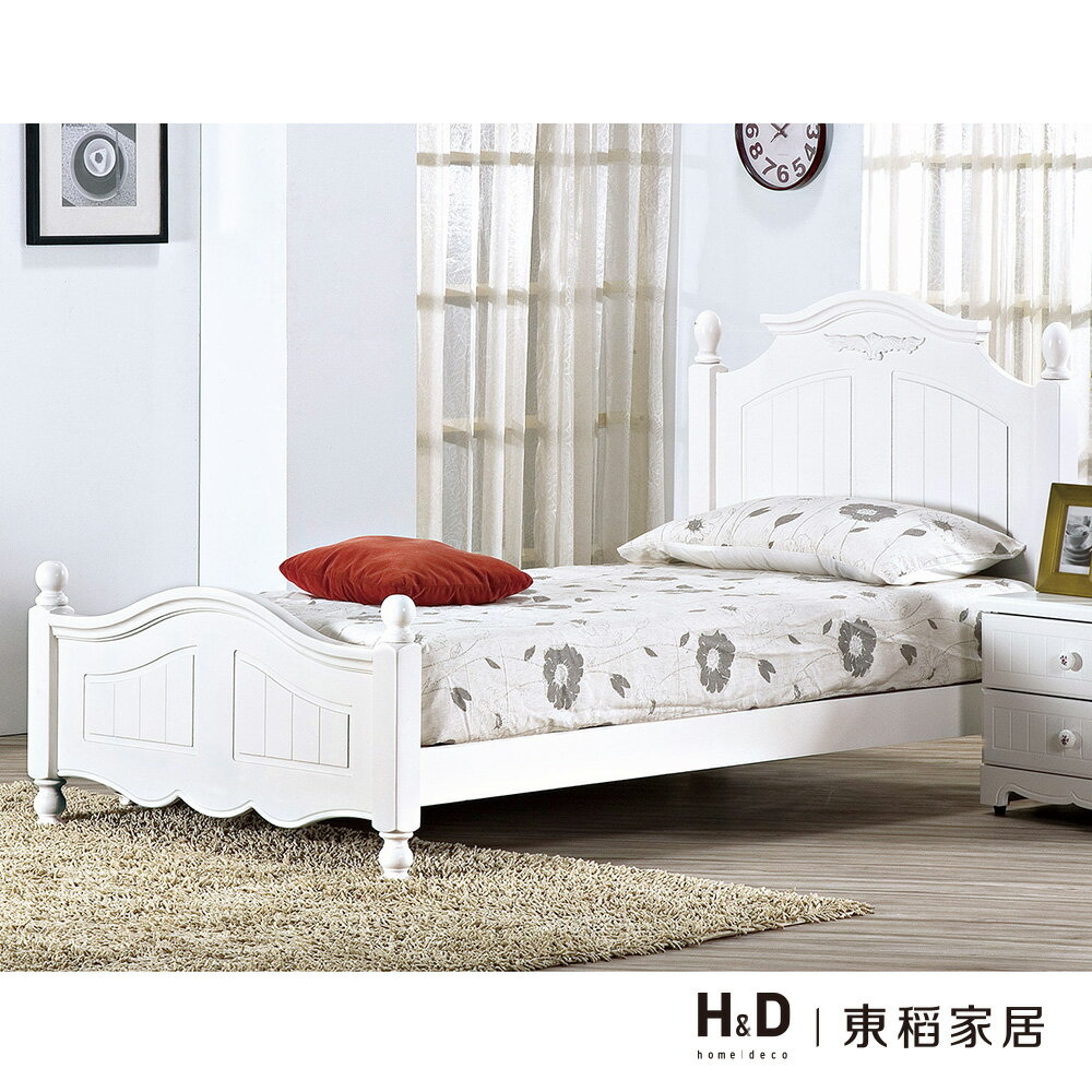| 瑪莎3.5尺床架 尺寸: 長107X寬203X高106公分 材質: 床台為實木框架、全實木床床 正面、檯面國際環保MDF材質,白色耐磨噴漆處理 側板符合國際環保木心板,波麗漆處理 背板採用美背處理 |