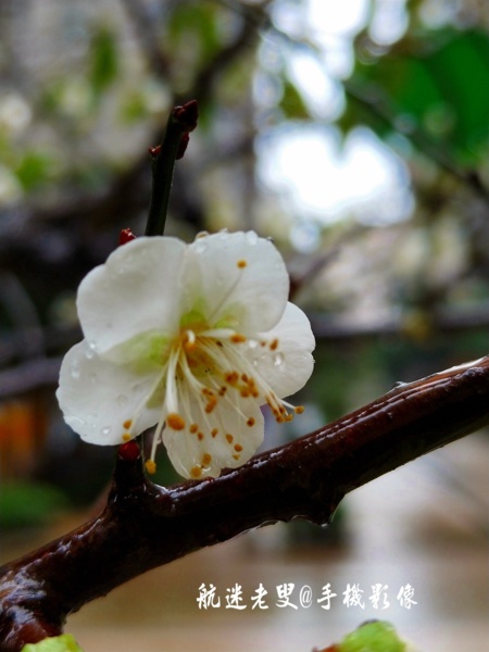 雨中賞梅的確是件愜意的事,但雨中拍梅卻是一件苦差事,一隻手打傘,一手拿手機拍攝很困難,每年此時社區中有了這些梅花的點綴,也就越發的顯得更精緻更典雅。