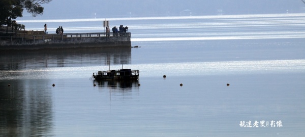 灰濛的天空與微露的陽光倒映在水面,微風徐徐,泛起漣漪,搖晃著倒映的水波,雖然手中沒有畫筆,只能用鏡頭記錄下這番美景。