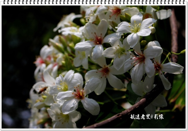 雪白的花瓣,襯托出挑水古道的寧靜,壓彎了樹枝,隨風搖曳,散發清香。