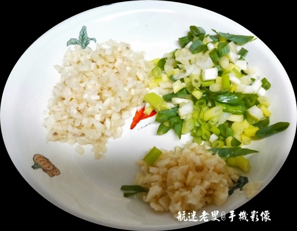 二、將蒜和薑、葱清洗乾淨後切碎備用。