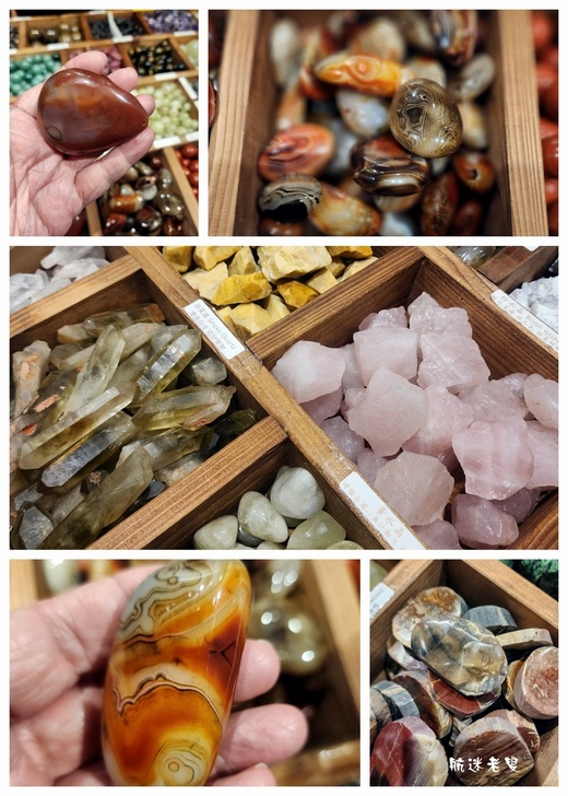 色彩斑斕,形狀各異, 讓入門者的我看到天然石材豐富的視覺呈現;從晶瑩剔透的水晶、溫潤的玉石,到擁有奇特紋路的瑪瑙和碧玉,展現它們的多樣性,有一種能觸動人心感覺。
