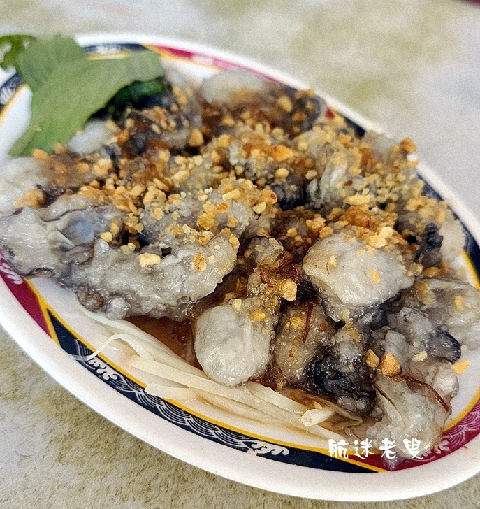 乾蚵仔(100元),撒上蒜酥,直接感受鮮蚵的肥美原味。
