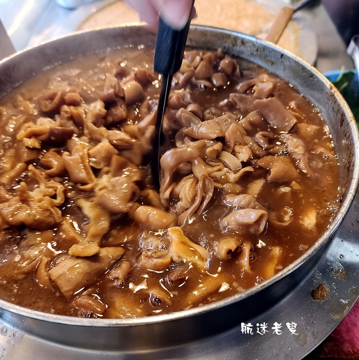 大腸的滷藝精髓,手工反覆清洗去腥,滷汁浸透至腸壁纖維,脂肪比例精準。入口Q彈帶嚼勁,卻不失軟爛入味,單點一盤乾大腸(100元)是我的必點。