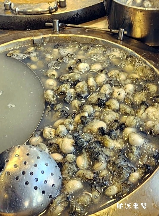 在攤位上就可以看到一大鍋麵線和一大鍋蚵仔, 蚵仔新鮮大顆又肥美,這就是「阿川」最大的賣點。