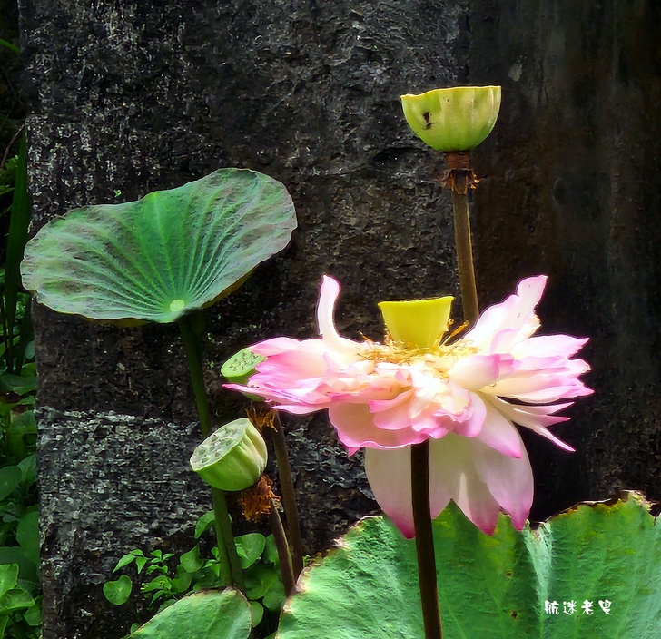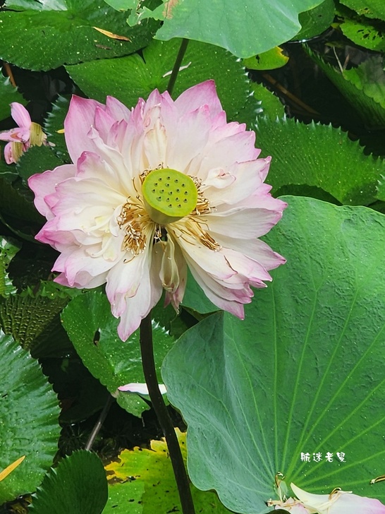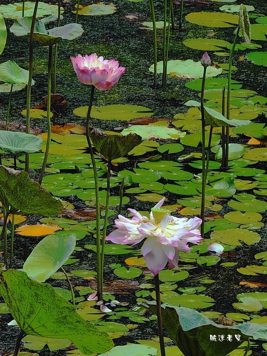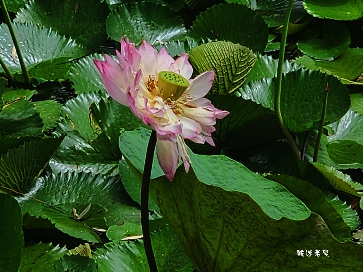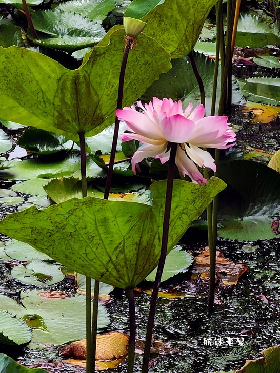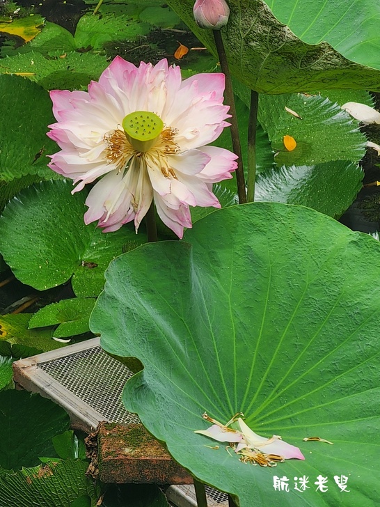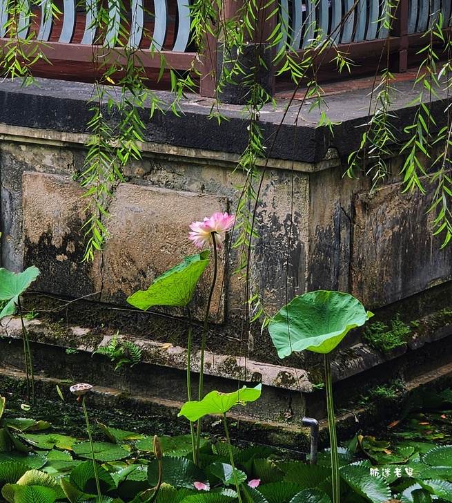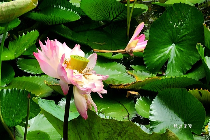 原本期待滿池盛開的荷花,結果一走近庭院水塘,
