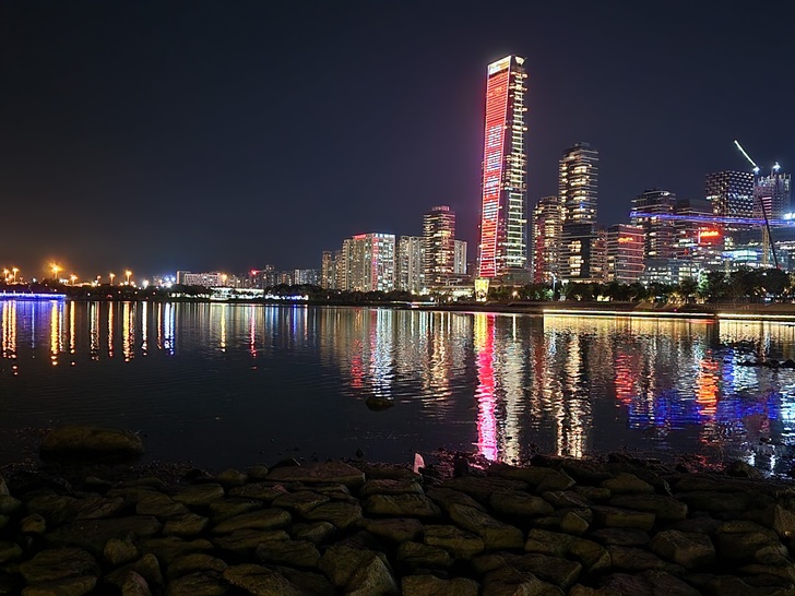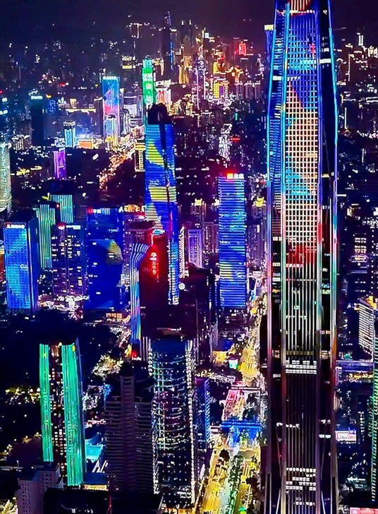 深圳,夜晚的美麗勝過白天的繁華,說它一天裡最美的時刻,那一定是夜幕降臨以後,手機拍下的夜景燈光熠熠生輝,整個建築在夜空中顯得非常壯觀,從較遠的地方看,更讓人驚歎不已。