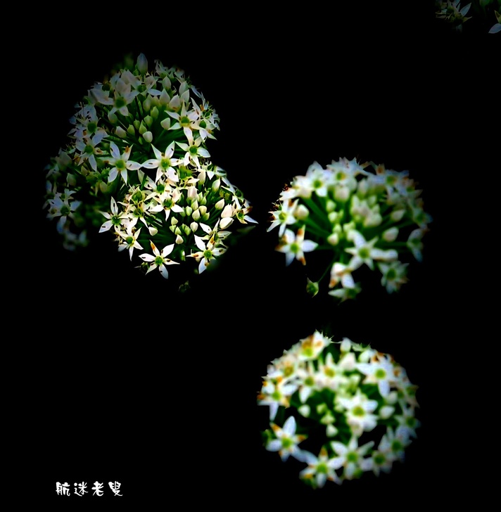 己秋,桃園大溪的田野迎來一場韭菜花海盛開,喜歡追花也拍花,樂趣在其中在韭菜園中的情景,用微距鏡頭黑色背景對韭菜花細緻度比較容易掌握。