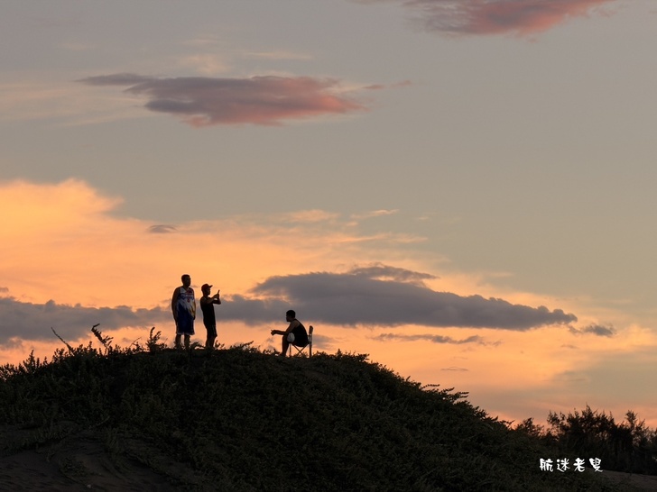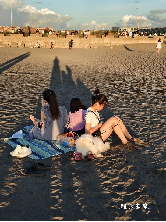 沙灘四周的情景,等待夕陽、倒影、三五好友在沙灘賞景慢活步調的人,陪伴哈巴狗氣氛非常悠閒,在繁忙的生活中,能找到這樣一片寧靜,框下這鏡頭實屬難得。