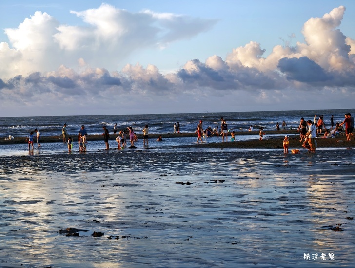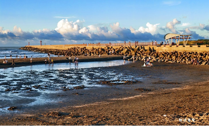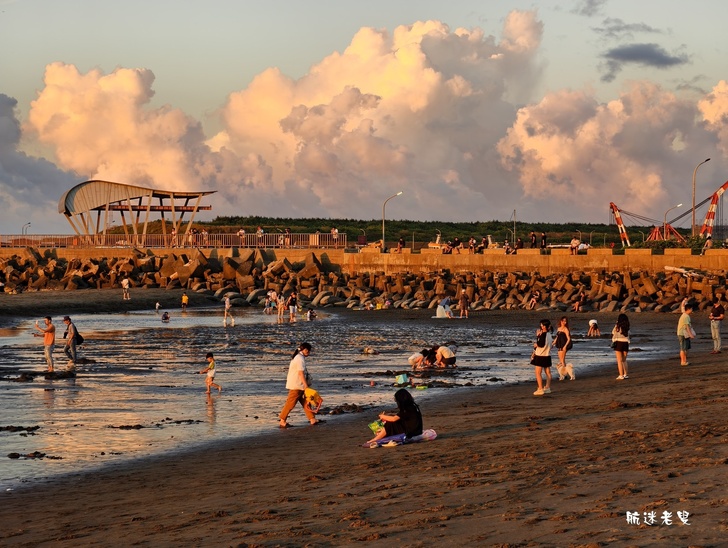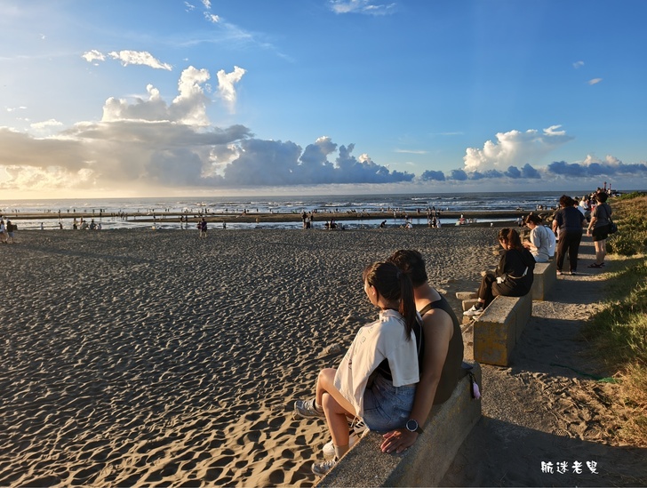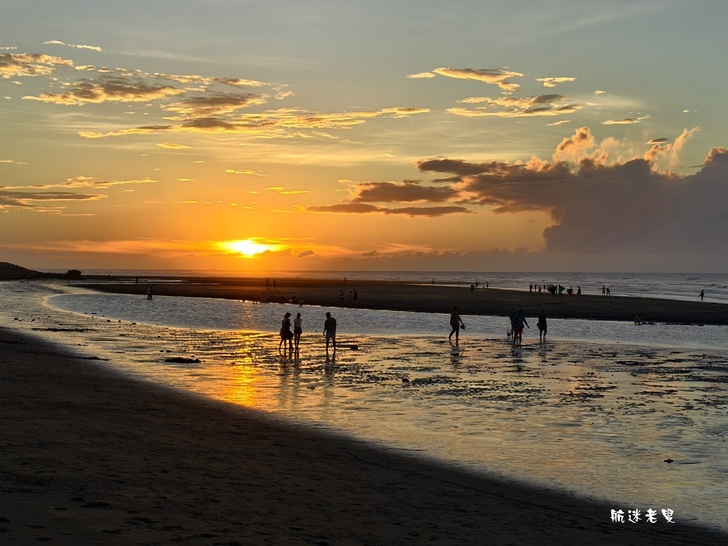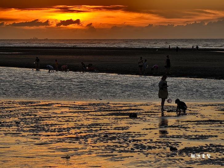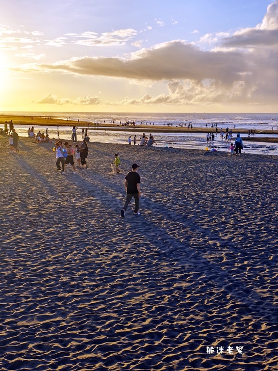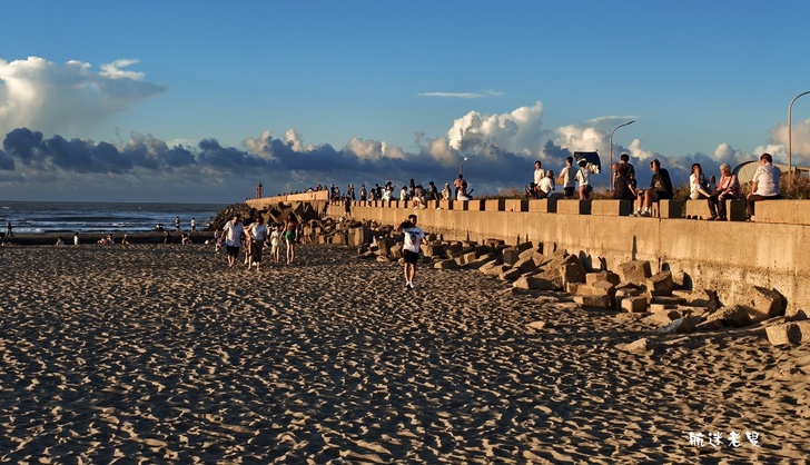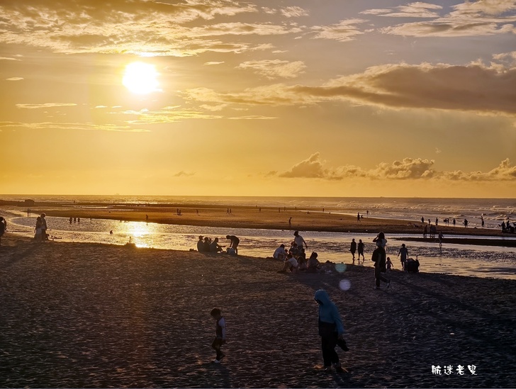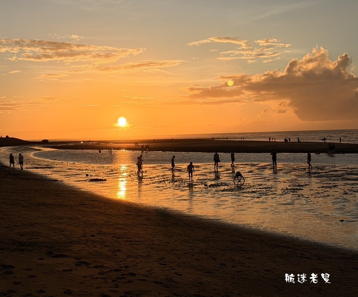 家庭.孩子們在沙灘上奔跑、挖沙,追逐著退潮的海水,笑聲清脆,情侶依偎在一旁拍照,捕捉賞夕陽的身影,記錄下這美好的片刻。