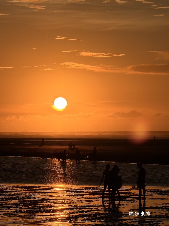 捕捉當下不容錯過,黃昏時段最美,夕陽染紅海面,沙灘上的人影勾勒出很有層次的剪影,是拍照的黃金時段。