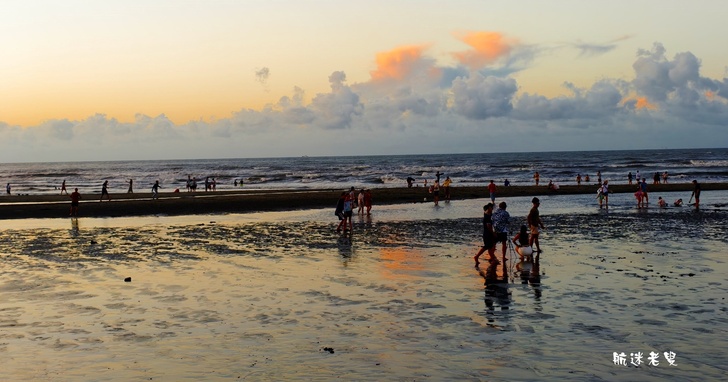 在竹圍漁港的淺灘觀賞夕陽,