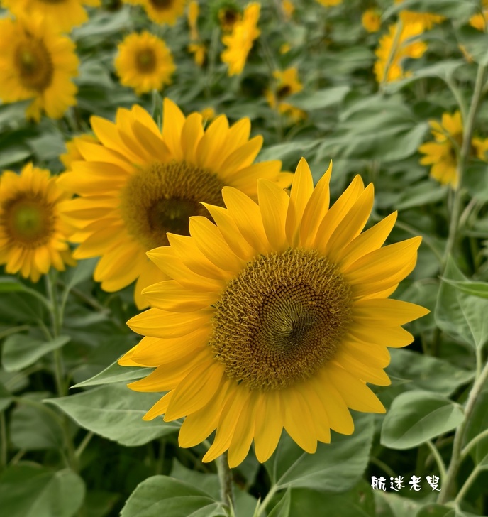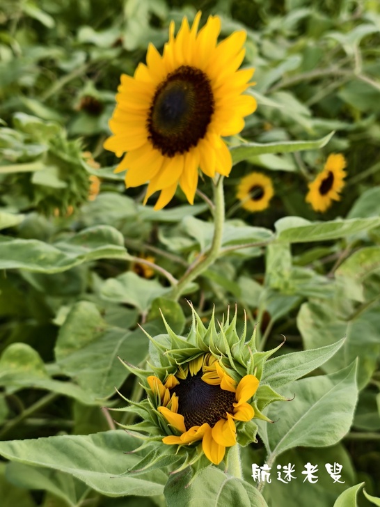 花田中的高個子,總有幾株特別高聳,像是領隊,帶著一群小太陽朝同一個方向。