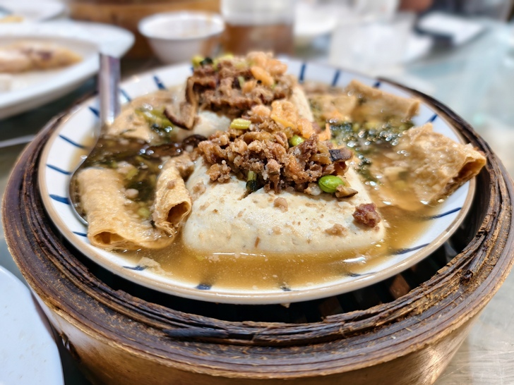 上桌的是「清蒸臭豆腐」,湯汁清亮、豆香濃郁,有股發酵的味道不是衝鼻。