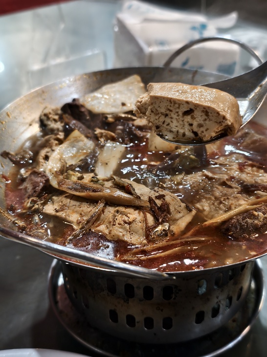 豆腐與鴨血吸滿辣香,每一口都像是被電到的感覺,嘴巴微麻,心卻滿足。