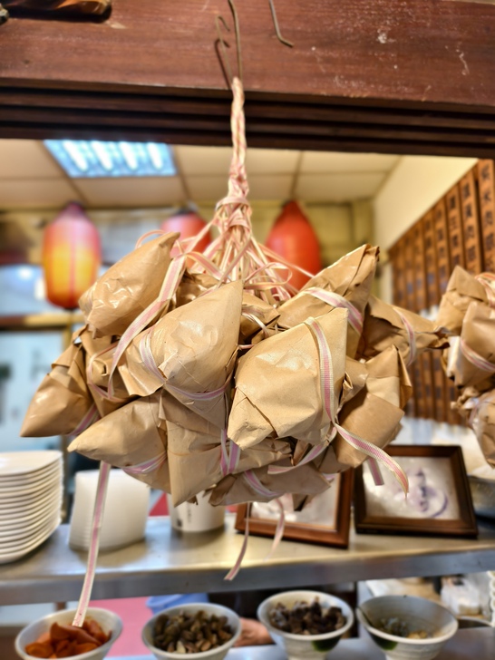 那是一棟外觀復古、牆面斑駁卻極有味道的台式老房,木窗、紅燈籠、斑駁的牆面,沒有太多裝飾,卻有種「這裡的肉粽才是主角」的氣場。