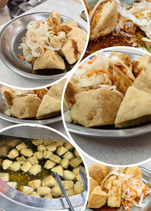 炸臭豆腐,外酥內嫩、味道重但不嗆,是那種「越臭越香」的代表,炸得金黃,泡菜清脆可口配上泡菜的清脆,一冷一熱、一臭一香,堪稱完美組合。