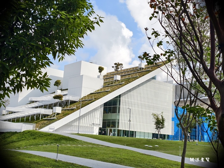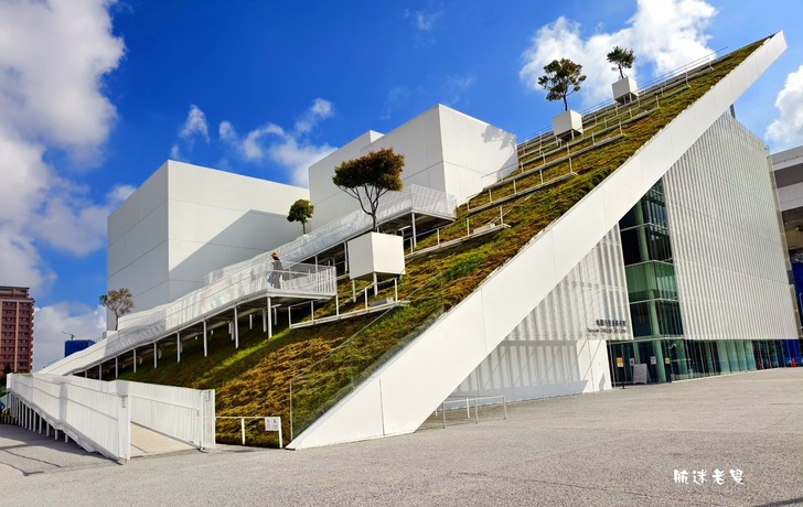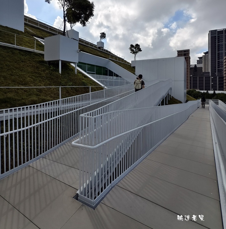 在兒美館側邊,山本理設計之字型步道,可以從1樓慢慢走到三樓露台,大約需要五分鐘能很輕鬆的走到樓頂。