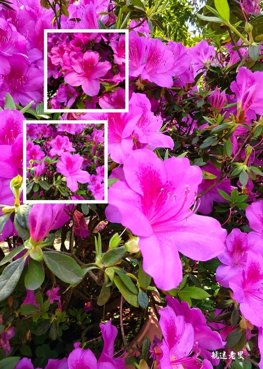 杜鵑加上繡球,雙主角同框競豔,最讓人驚喜的,是某些角度,兩種花同時入鏡。