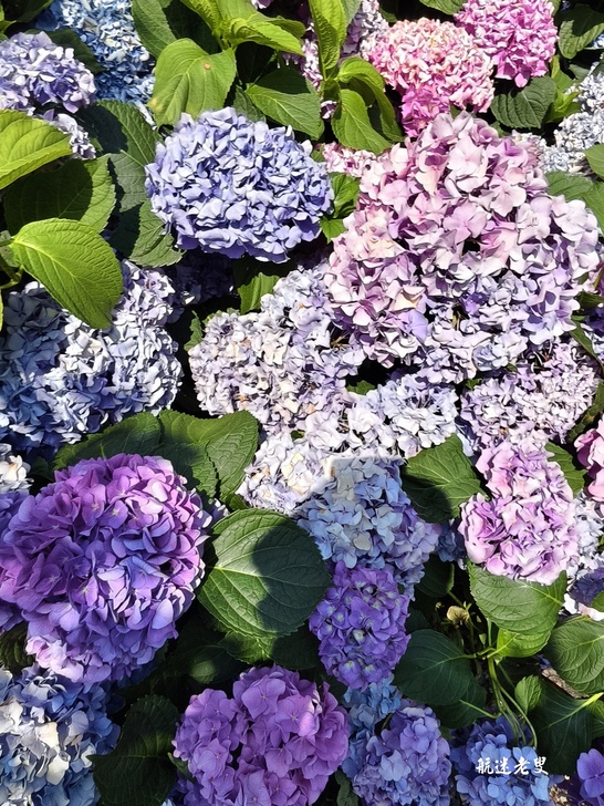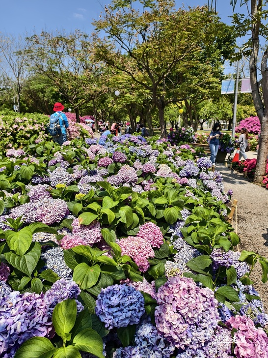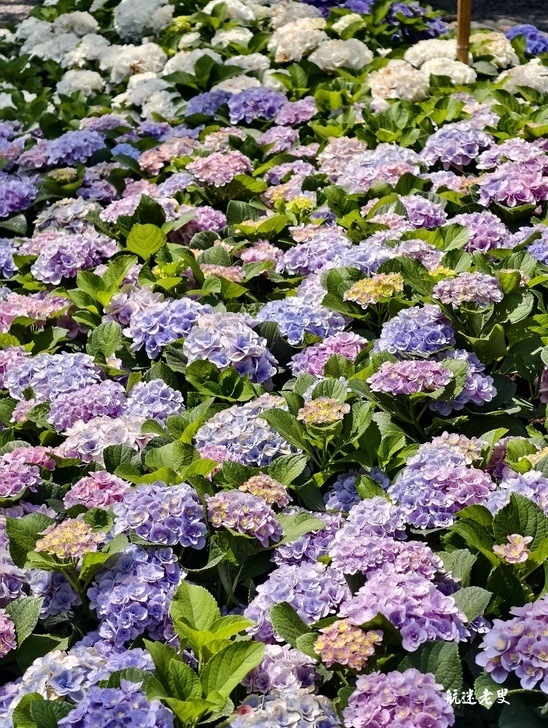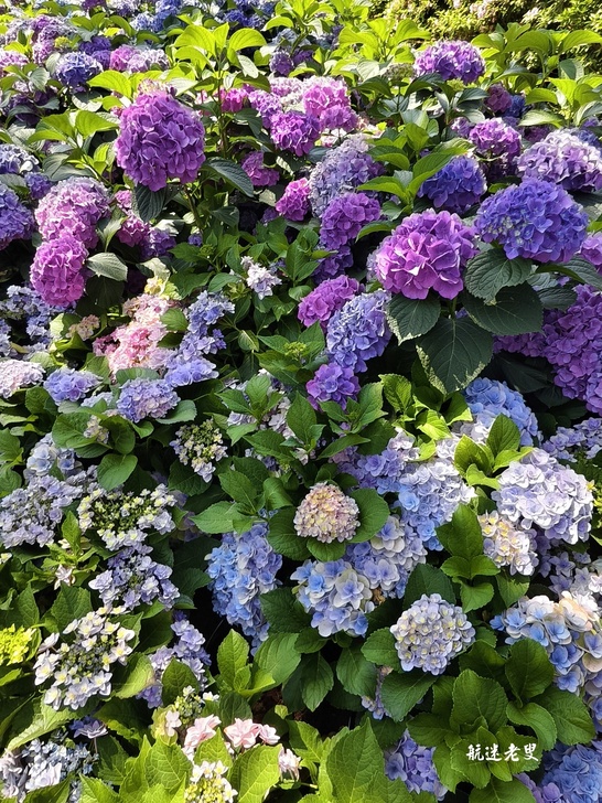 杜鵑花就是要一大片才好看。浪漫的花型及色系有別於一般公園道路的杜鵑,繡球花浪漫的花型及色系多樣有紅繡和藍繡、皇家紅、法波羅.弗洛利亞.弗倫緹娜….多到分不清楚和熟悉的繡球花色系不太一樣,除了天氣炎熱濕度大,還是很值得一去的。