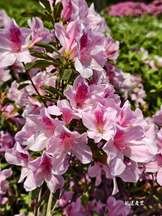 不是零星花叢,而是,一整片鋪開的杜鵑和繡球花花海,而且是高低錯落、有層次、有厚度的那種。
