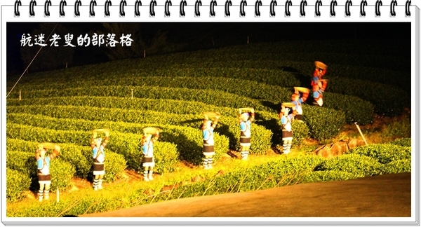 雷射的光束下,展現阿里山現場採茶的表演,音響效果突出