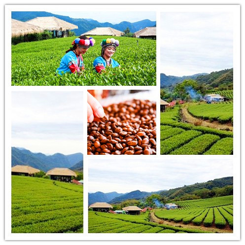 青山高聳壯麗、雲霧繚繞、茶樹青青、咖啡香醇,