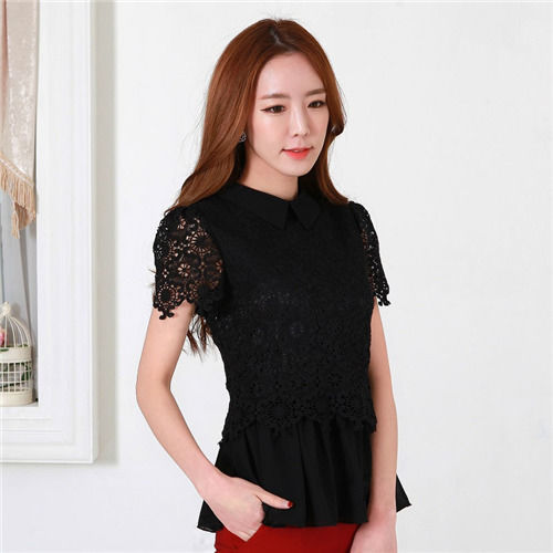 【菟絲花】大尺碼-短袖翻領時尚蕾絲拼接雪紡優雅顯瘦假兩件上衣 現貨+預購 |