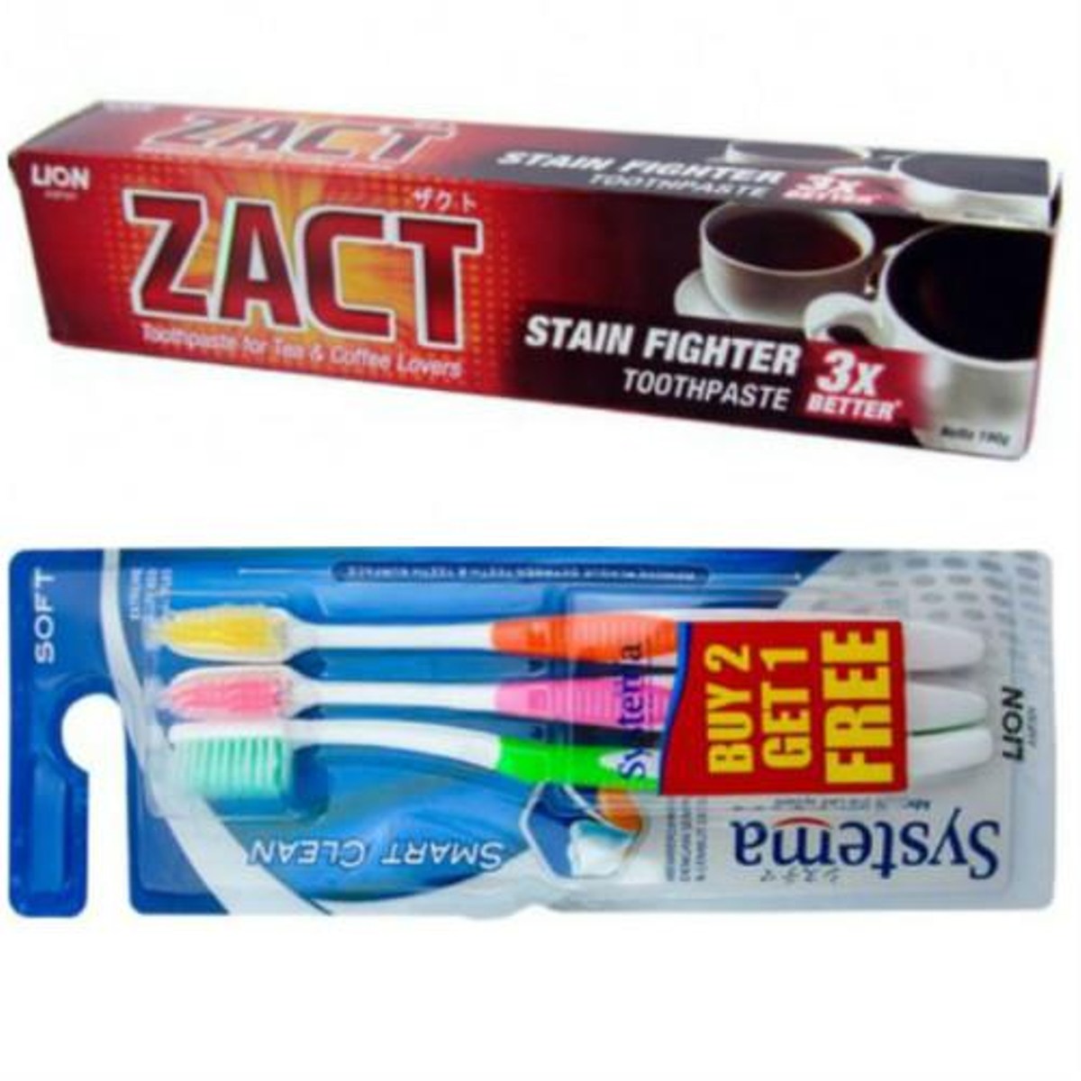 設計進口ZACT獅王漬脫牙膏(190g) -6+獅王細潔牙刷(3入)-3 - 016148259客制推薦-口腔清潔