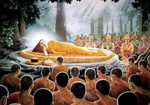 佛陀不久進入了拘屍那迦羅城,吩咐阿難道: “ 你去為我在娑羅雙樹間敷座設床,頭在北面向西,我的教法最近可以北方宏傳,未來也會盛行在西方。我於今夜將入涅槃。 ”