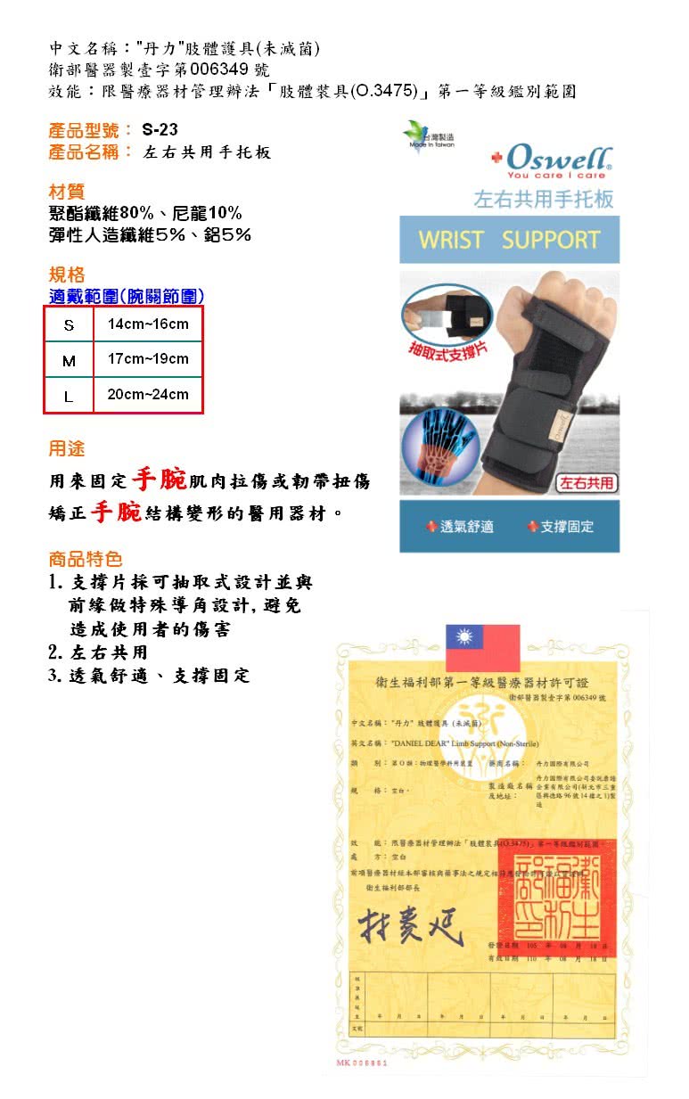 在購物網路上找到 【oswell】S-23左右共用手托板(固定肌肉拉傷或韌帶扭傷) 可以保護身體,又是cp值高的產品!