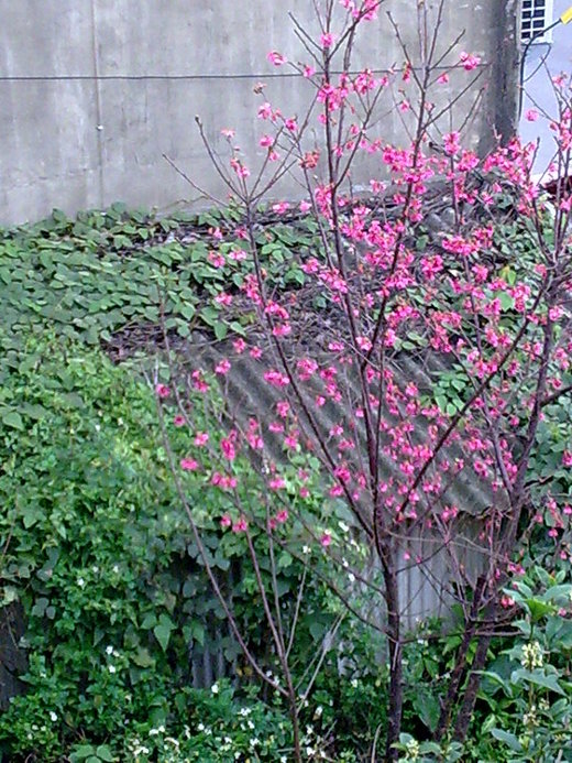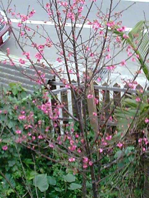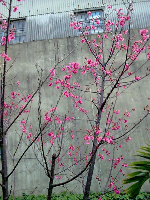 好友家側邊種植一棵櫻花 ,今年初次開花;忍不住趕快用手機拍照----
