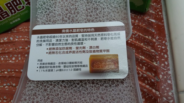 肥盒裡還附一張小卡,說明南僑水晶肥皂的特色