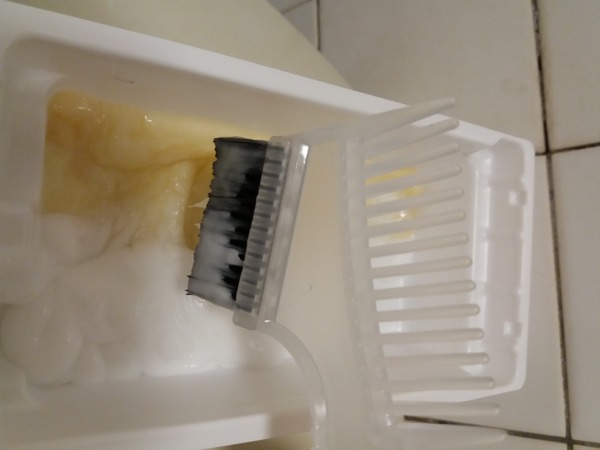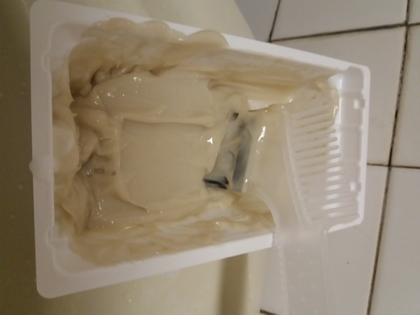 使用染刷的刷子那一邊將第1劑跟第2劑一起調合