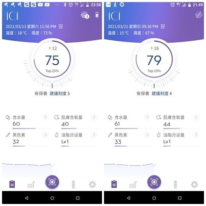 連續認真做了9天的檢測之後,iCi 肌膚檢測儀真的是非常的準確,雖然我的含水量只有偏高一點,及黑色素也偏高一些(前幾天的天氣實在是太好,紫外線非常的強烈,即使是我擦了防曬及戴上口罩,還是抵擋不了春天的紫外線啊~~