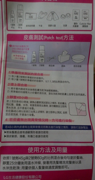 >染髮可能造成極少部份人士皮膚過敏,染髮前48小時請依盒內說明書做皮膚敏感性測試。