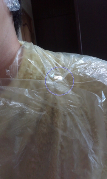 因為我很擔心會沾到衣服,所以在身上加墊了一條毛巾