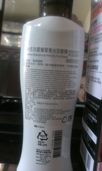 染髮後使用Elastine香水洗髮精,試用的Elastin PURE香水洗髮精(永恆珍愛)