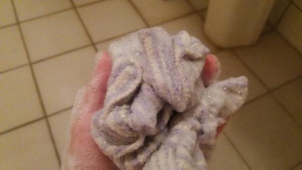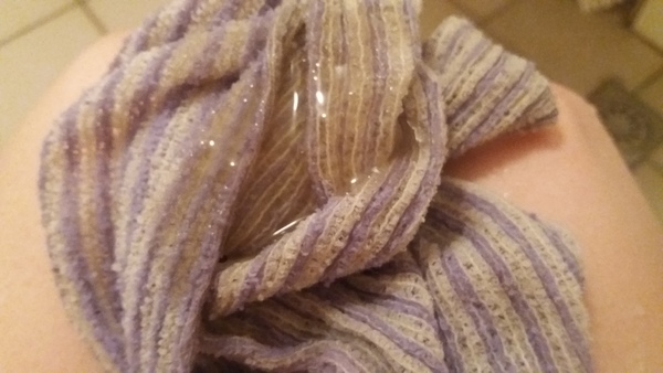 一包7ml的量,倒入沐浴巾,沾水搓楺起泡
