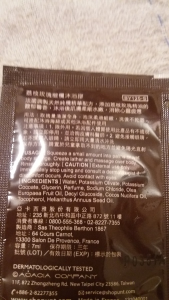 這次要體驗是檸檬馬鞭草橄欖沐浴膠+薰衣草乳油木果身體乳 / 7ml試用包*2組