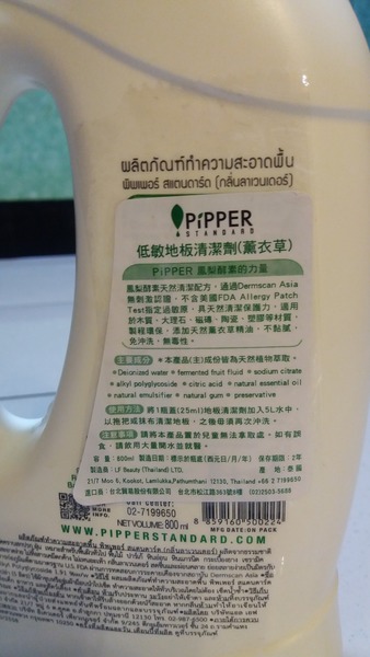 鳳梨酵素天然清潔配方,Pipper Standard產品不含石化原料,無毒素,通過Dermscan Asia低過敏性和非刺激性的認證。也沒有熒光增白劑和無羥基苯甲酸酯,無SLS、SLES。不含美國FDA Allergy Patch Test指定過敏原,具天然清潔保護力,適用於木質、大理石、磁磚、陶瓷、塑膠等材質,製程環保,添加天然薰衣草精油,不黏膩,免沖洗,無毒性。
